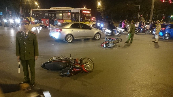 Theo một số người chứng kiến, xe ô tô đâm vào 6 xe máy và một xe đạp điện. Hậu quả vụ tai nạn liên hoàn khiến ba người bị thương phải đưa đi cấp cứu.