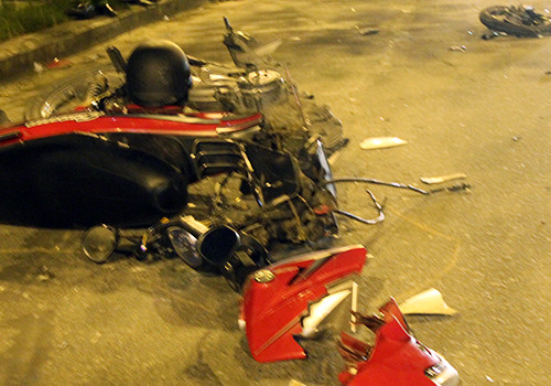 Một chiếc xe máy bị đứt rời sau tai nạn.