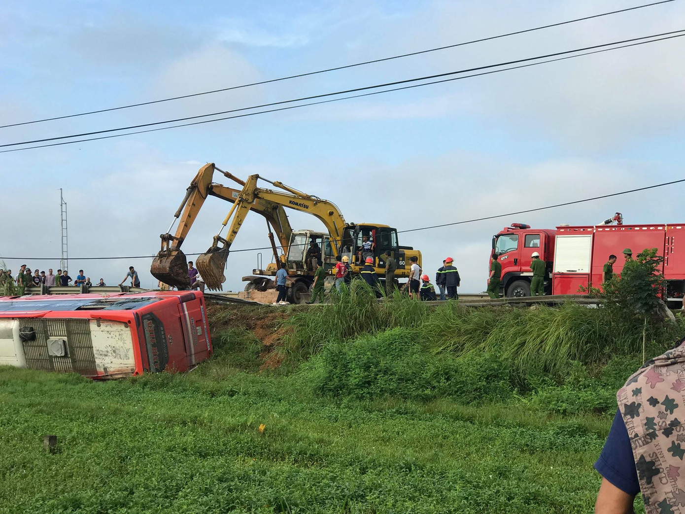 Tại hiện trường, chiếc xe khách lật nằm nghiêng giữa ruộng, nhiều mảnh vỡ rơi tung tóe, hàng taluy bên đường bị đâm gãy đổ. Ngay sau vụ tai nạn xảy ra, lực lượng CSGT huyện Hương Sơn đã có mặt tại hiện trường điều tra làm rõ nguyên nhân vụ tai nạn.