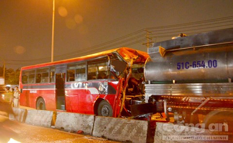 Vừa qua khỏi hầm chui Tân Tạo khoảng 300 mét (P.Tân Tạo A) thì bất ngờ mất lái tông trực diện vào đuôi chiếc xe bồn chở nhiên liệu BS: 51C – 654.00 đang dừng sát dải phân cách bê tông giữa xe ô tô và xe máy.