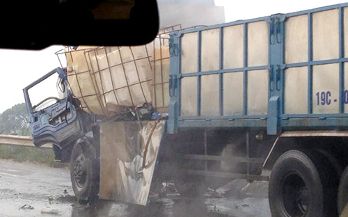 Trong khung giờ cao điểm sáng nay (29/11), trên Quốc lộ 1B, đoạn qua địa phận Ninh Hiệp (Hà Nội) đã xảy ra một vụ tai nạn giao thông nghiêm trọng giữa 1 xe tải mang BKS Phú Thọ chở axit và 1 xe sơmi rơmooc.