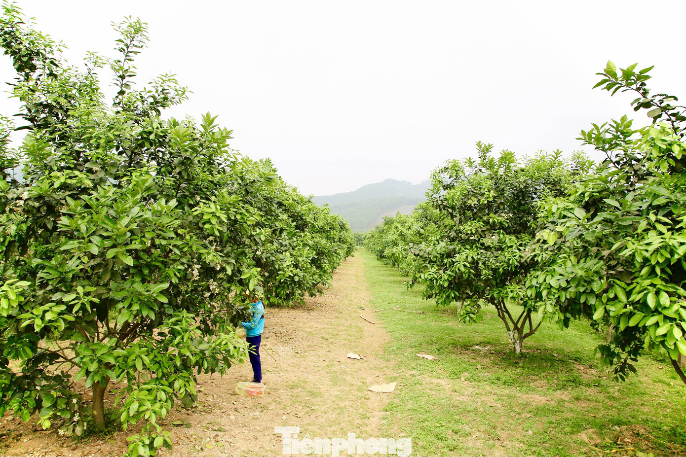 Xem nông dân Hà Tĩnh thụ phấn cho 'đệ nhất bưởi' ảnh 3Dịp này đến Hương Khê, tại những vườn đồi, trang trại, người dân hối hả đưa từng hạt phấn vào nhụy vàng của các bông hoa, giúp bưởi kết trái.