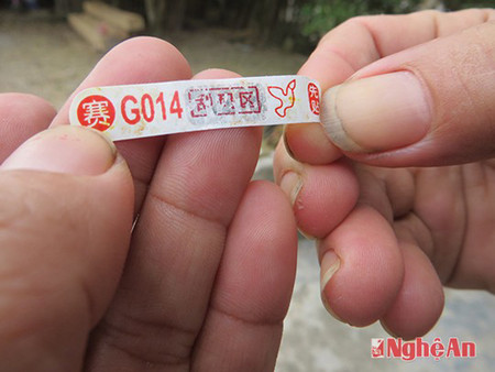 Khi nhặt chim lên, anh Thắm phát hiện chân bên phải của chimcó một vòng chữ số lạ và dòng chữ CHINA, hai bên cánh chim có 5 dòng chữ lạ,bên kia có hai chữ nên anh bóc thử vòng quấn phía ngoài chân thì dãy số to hiệnra phía trong.
