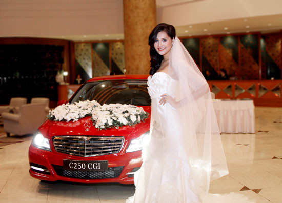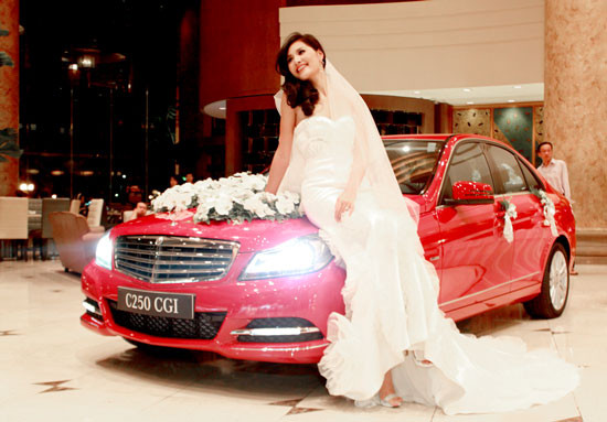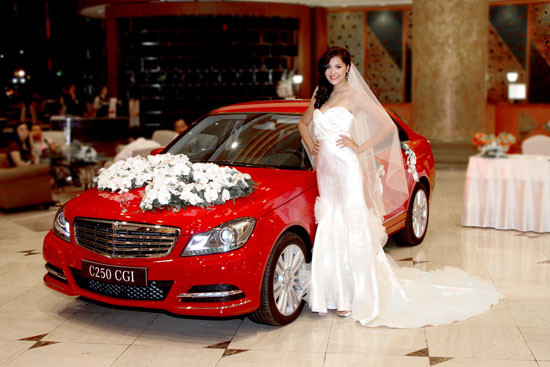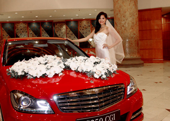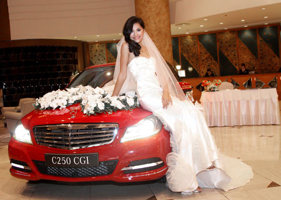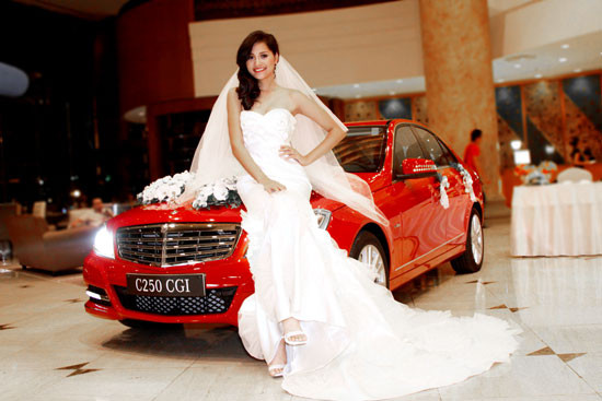 Cuối tuần qua, Mercedes-Benz đã tham gia triển lãm cưới diễn tại Khách sạn New World với một chiếc C250 màu đỏ mới. Đặc biệt, chương trình có sự xuất hiện của hoa hậu Hương Giang với bộ trang phục cưới lộng lẫy bên cạnh chiếc xe cưới C250 đỏ kết hoa màu trắng sang trọng.