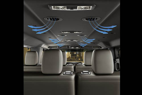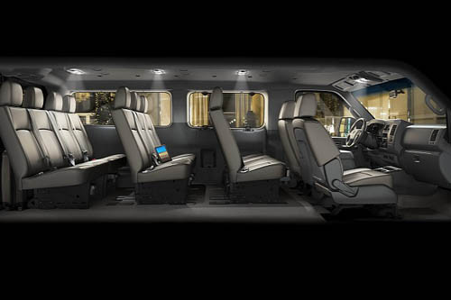 Xe còn được trang bị một số tiện ích đáng chú ý như đàm thoại rảnh tay Bluetooh, camera hỗ trợ lùi, ổ cắm điện 120V, bàn làm việc bên trong ( nếu tháo dỡ hàng ghế thứ 2 hay thứ 3). Với những tiện ích trên, Nissan NV3500 HD trở thành chiếc xe 12 chỗ cao cấp nhất trên thị trường hiện nay.
