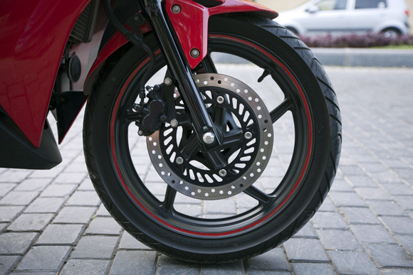 Bánh xe phía trước và phía sau đều là loại la zăng 5 chấu thể thao. Honda CBR150R 2011 sử dụng phanh đĩa đơn ở cả bánh trước và bánh sau.