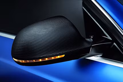 Bên trong xe nội thất được thể hiện chủ yếu theo tông màu đen và xanh da trời, với ghế thể thao bọc da Nappa, ốp cửa sử dụng chất liệu da tổng hợp cao cấp alcantara, cùng với sự xuất hiện của vật liệu sợi các bon tại phần dưới của vô lăng, cụm điều khiển trung tâm và nắp hộp chứa đồ.