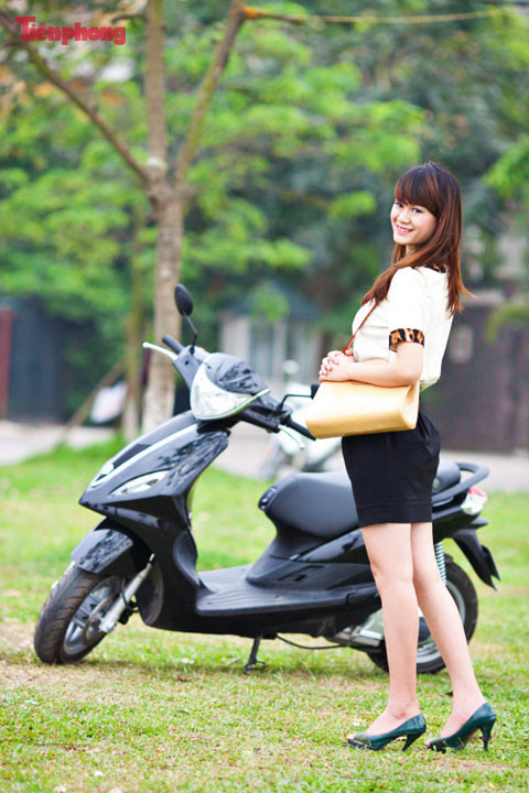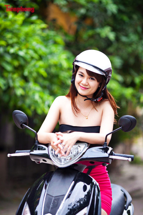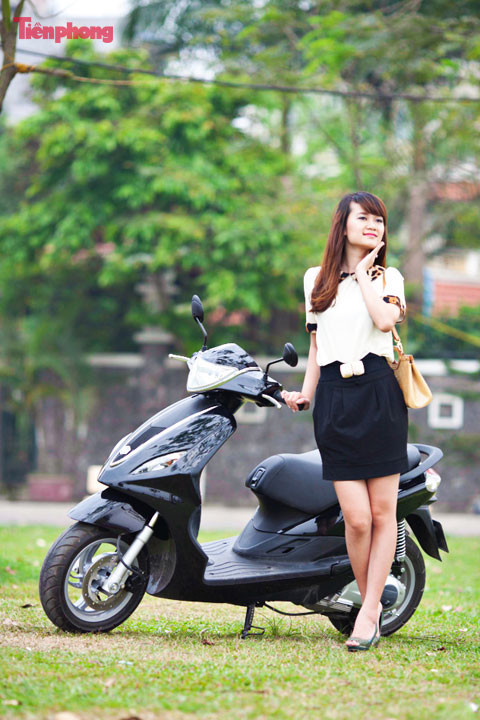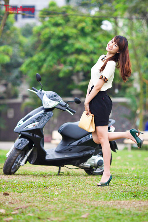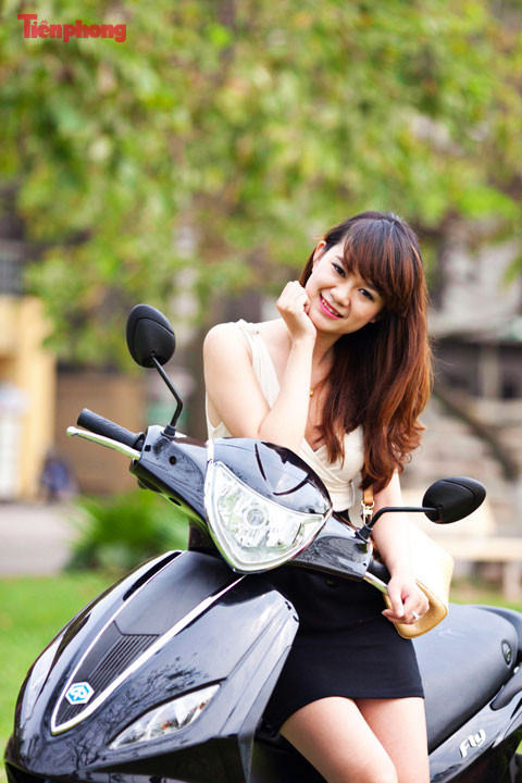 TPO - Thiếu nữ với khuôn mặt xinh xắn và nụ cười tươi khoe dáng dịu dàng bên chiếc Piaggio Fly 125cc phiên bản 2012.