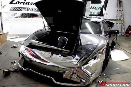 Đó là chiếc Lamborghini Murcielago LP640 độc đáo được một khách hàng tại Mỹ đặt riêng nhà độ Diamond Black Exteriors mạ c-rôm.