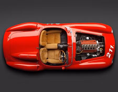 Ferrari 625 TRC Spider ứng dụng động cơ 3 lít V12 sản sinh công suất 320 mã lực, xe từng được tay đua F1 mô tả là chiếc xe đua tốt nhất, dễ điều khiển nhất và về nhất cùng tay đua này tại chăng đua Laguna Seca trong năm 1958.