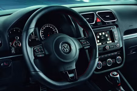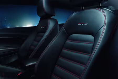 Sự kết hợp của hai tông màu đỏ đen tiếp tục được thể hiện bên trong xe với da màu đen khâu chỉ đỏ, kiểu số sàn truyền thống cũng xuất hiện với đầu cần sang số giống quả bóng golf.