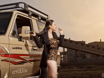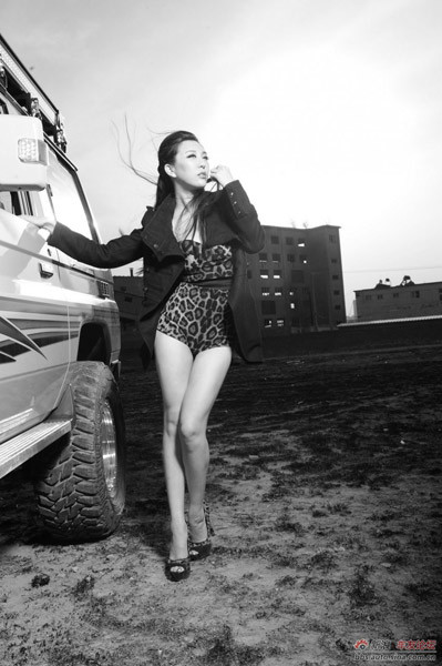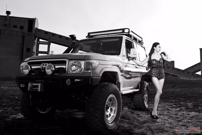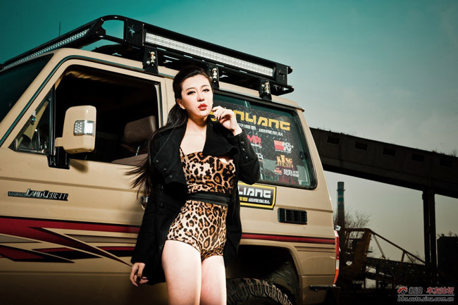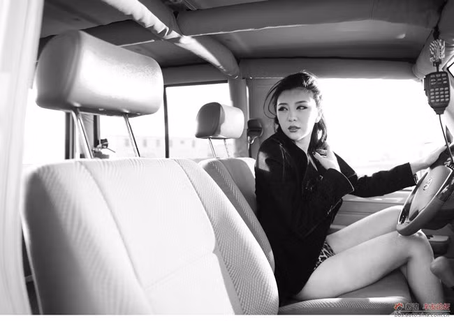 Chiếc xế hộp hầm hố không làm giảm đi sự sexy của người đẹp.