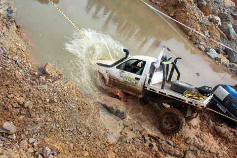 | Chiếc xe của nhà vô địch lội nước trong một bài thi. |