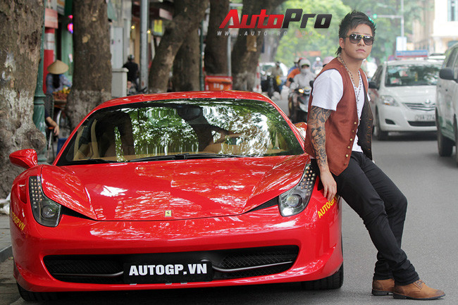 | Chàng ca sĩ "Tìm lại bầu trời" bất ngờ xuất hiện trên phố Hà Nội cùng chiếc xe Ferrari 458 Italiia . |