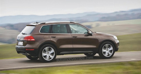 So với các mẫu xe đời trước thì 2012 Volkswagen Touareg có thiết kế to hơn, rộng rãi hơn, tiết kiệm hơn, khung gầm thấp hơn và trọng lượng nhẹ hơn. Phần đầu xe trông không cầu kì nhưng lại toát lên được sự mạnh mẽ cứng cáp với những đường gờ dày cũng như những đường sọc ngang làm từ crôm trên hốc hút gió và lưới tản nhiệt chữ U.