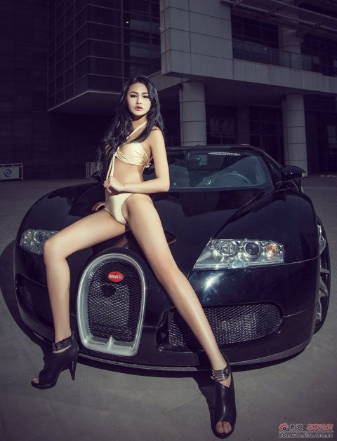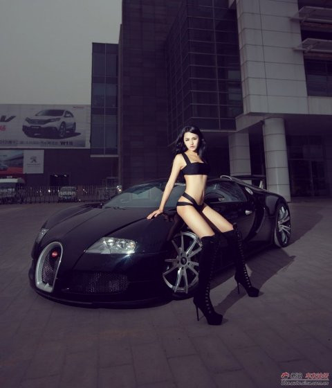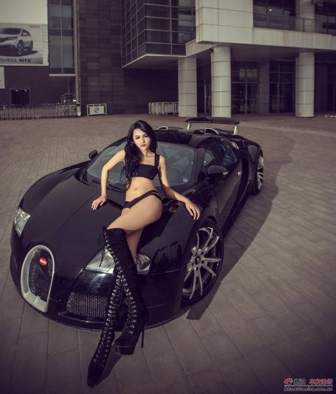TPO - Cô người mẫu tạo dáng đầy gợi cảm bên chiếc siêu xe thể thao triệu đô Bugati Veyron.