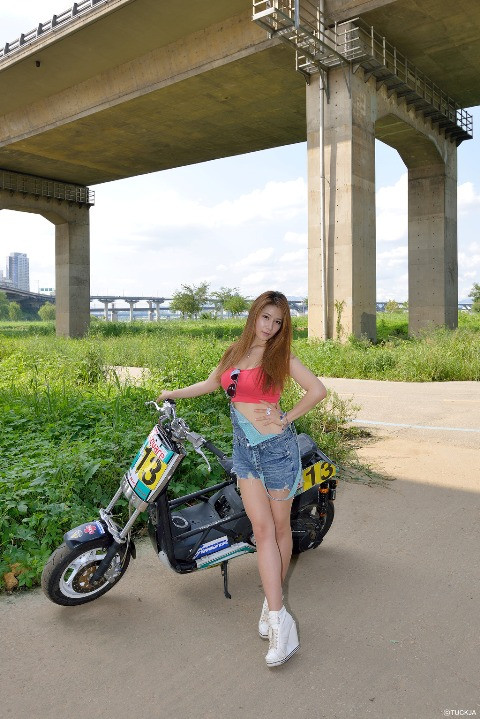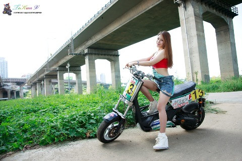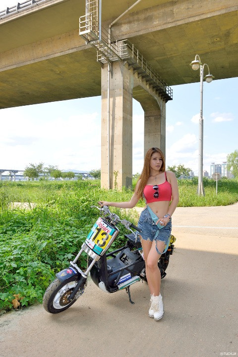 TPO - Cô người mẫu Hàn Quốc tự tin khoe dáng xinh bên cạnh chiếc xe ga nhỏ nhắn thời trang.