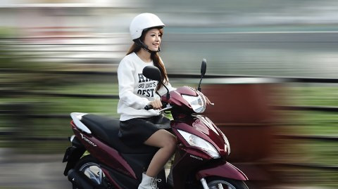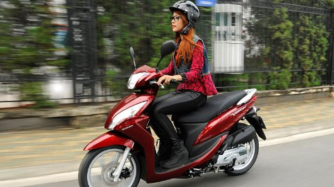 TPO - Cô nàng Chi Pu được dịp tạo dáng trẻ trung xinh đẹp bên chiếc Honda Vision phiên bản mới, có giá 28,7 triệu đồng.