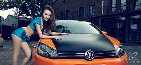 TPO - Cô người mẫu xinh đẹp với đôi môi gợi cảm tạo dáng bên cạnh chiếc xế hộp xinh xắn và thời trang của Volkswagen.