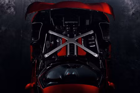 Động cơ này song hành cùng hộp số sàn 6 cấp Tremec TR6060 cải tiến với tỷ số truyền động nhỏ hơn còn 3,55 từ 3,07, dẫn động các bánh sau, giúp xe có khả năng đạt tốc độ tối đa 331 km/h khi chạy số 6 với dải tua động cơ cực đại 6.200 vòng/phút.