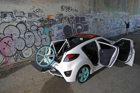 Khi kéo hết mui ra phía trước, những chiếc xe đạp, xe máy, hay thậm chí xuồng kayak cũng có thể được Veloster mang theo một cách gọn gàng, như những chiếc Pick-up.