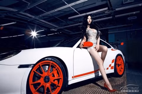 TPO - Cô người mẫu có những đường cong nóng bỏng tạo dáng gợi cảm bên chiếc xế thể thao Porsche 911 GT3 RS.