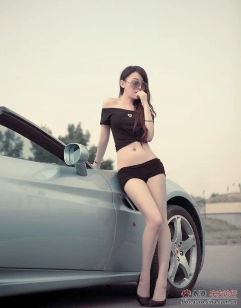 TPO - Cô người mẫu tạo dáng lạnh lùng nhưng vẫn hết sức gợi cảm bên cạnh chiếc xế hộp thể thao mui trần của Ferrari.