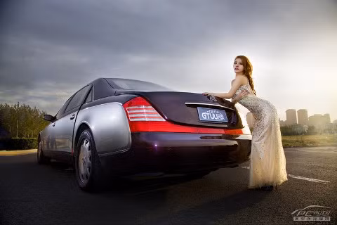 TPO - Cô người mẫu xinh đẹp khoe dáng kiêu sa lộng lẫy bên cạnh chiếc xế hộp sang trọng của Maybach.