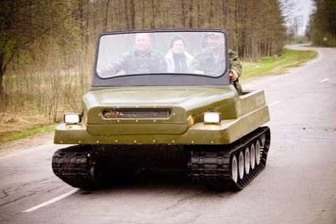 Chiếc xe sử dụng động cơ Lada VAZ-2107, truyền động tới hệ thống bánh xích tương tự xe tăng, mang lại khả năng di chuyển trên mọi địa hình.