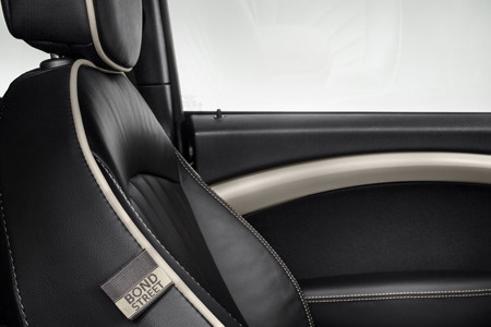 Nhắm tới các khách hàng thích sành điệu, bên ngoài, Clubman Bond Street khoác lớp sơn đen ánh kim ‘Midnight’, tương phản với màu nâu nhạt Cool Champagne trên trần xe, ốp gương chiếu hậu và nẹp góc sau xe. Xe còn có bộ vành chấu đôi riêng kích cỡ 17-inch với nắp trục màu Cool Champagne.