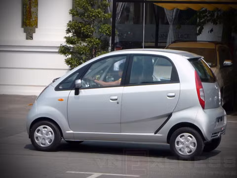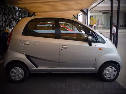 Mẫu xe giá rẻ nhất thế giới - Tata Nano phiên bản 2013 bất ngờ xuất hiện tại Sài Gòn, động cơ 0,6 lít với mức tiêu thụ nhiên liệu 4 lít/100 km. Về VN, giá xe lên tới khoảng 200 triệu đồng.