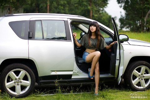 TPO - Cô người mẫu xinh đẹp với khuôn mặt khả ái tạo dáng bên cạnh chiếc SUV của Jeep.