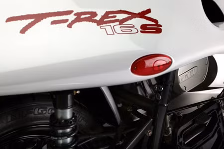 Có tên gọi T-REX 16S, mẫu xe này bổ sung vào danh sách các mẫu xe 3 bánh khác của Campagna, như T-REX 14R và T-REX 14RR (trang bị động cơ Kawasaki); T-REX 14RR và V13R (động cơ Harley-Davidson).