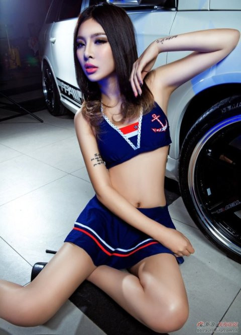 TPO - Cô người mẫu chân dài xinh đẹp khoe dáng ấn tượng bên chiếc xe hơi của Volkswagen.