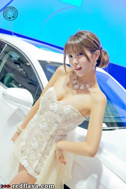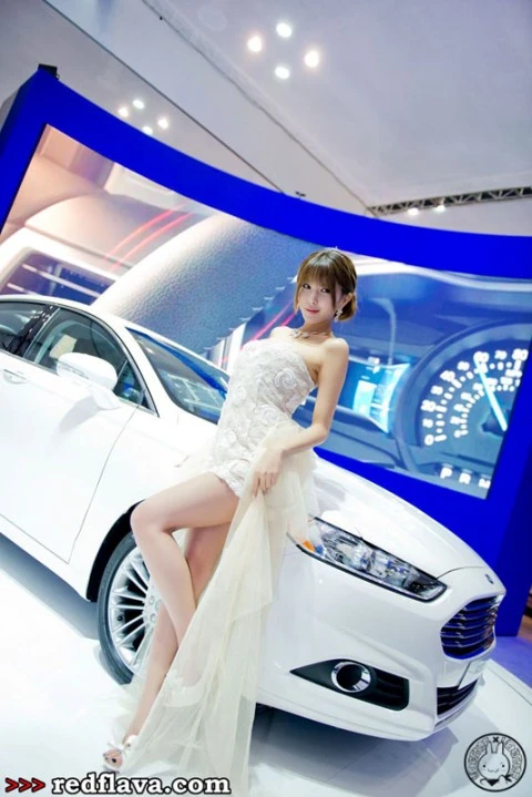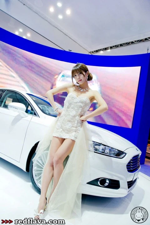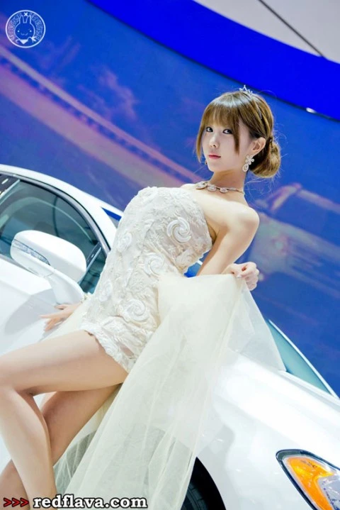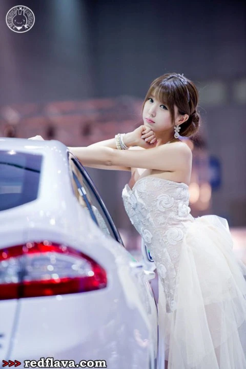 TPO - Cô người mẫu trẻ trung xinh đẹp trong bộ váy cưới lộng lẫy tạo dáng bên  chiếc sedan sang trọng.