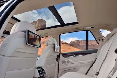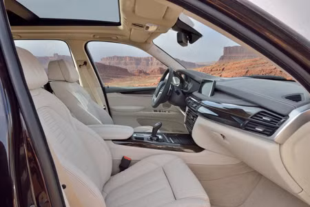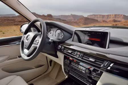 Còn bên trong xe, nội thất của X5 thế hệ 2014 áp dụng phong cách mới nhất của BMW, với cụm đồng hồ hiển thị gồm 4 đồng hồ hình tròn, song hành cùng màn hình hiển thị tính năng cỡ lớn 10,2 inch.