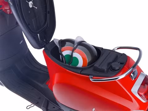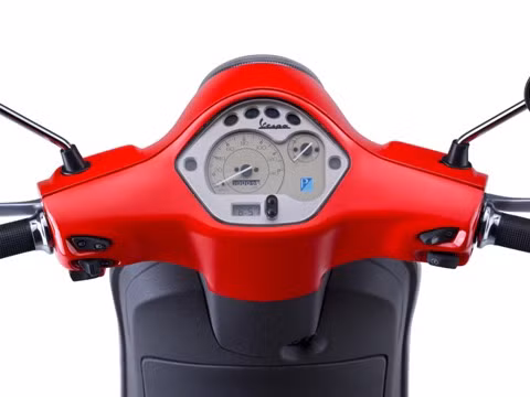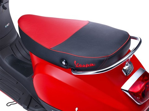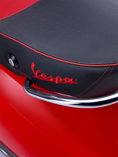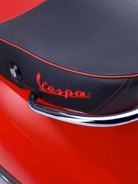 Gương xe phong cách trẻ hơn, yên xe 2 màu có thêu viền và chữ Vespa, các phối màu độc và cá tính hơn.