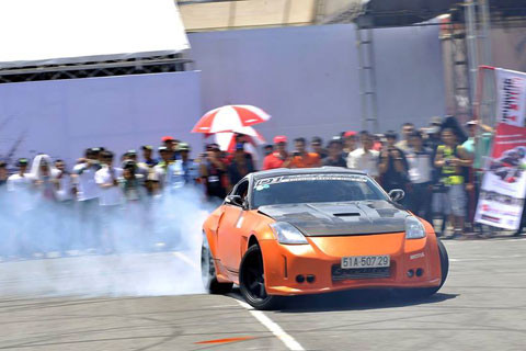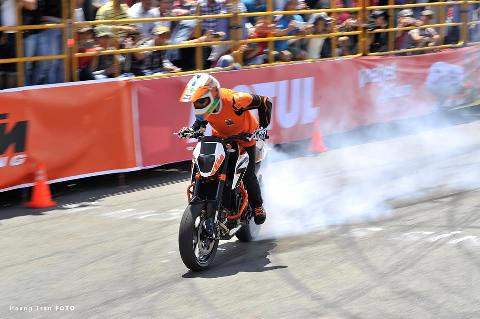 Những pha biểu diễn bốc đầu, bốc đuôi bằng xe máy, drift trên xe hơi đã tạo nên không khí sôi động và cuồng nhiệt trong khu vực Việt Nam Motorbike Festival 2013.