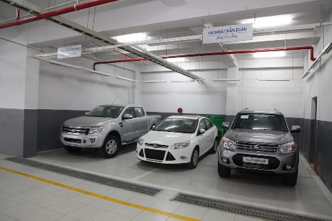 Phú Mỹ Ford được đầu tư trang thiết bị và công nghệ tiên tiến như dàn kéo nắn khung hiện đại và 14 cầu nâng với 6 buồng sơn nhằm tăng hiệu suất phục vụ khách hàng.