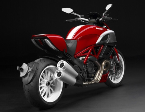 TPO - Mạnh mẽ và đẹp mắt hơn, Ducati Diavel phiên bản Stripe 2013 có 2 màu đỏ trắng và xanh trắng với mức giá 36.200 USD tại châu Âu.