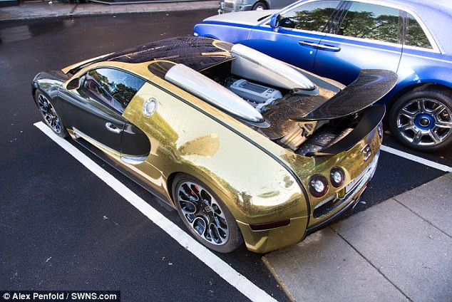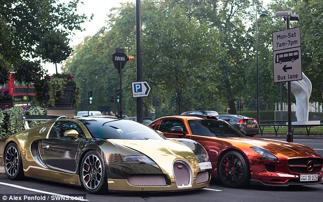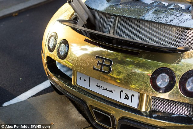 Chiếc xe mang biển số Ả Rập mang màu trắng, sau đó được phủ lên màu đen và vàng trở thành chiếc siêu xe bắt mắt nhất thế giới.