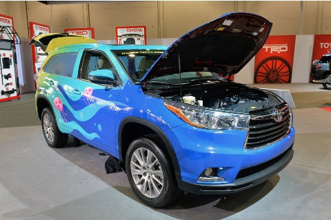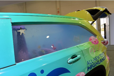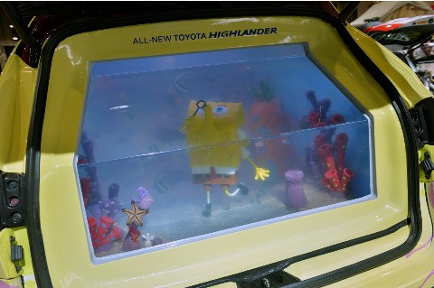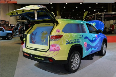 Đây là một ý tưởng độc đáo và hết sức đặc biệt, chiếc Toyota Highlander mạnh mẽ và to lớn hi sinh hơn nửa xe để chở 800 gallon nước, biến chiếc xe thành một bể cá thực thụ.