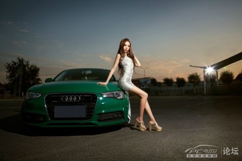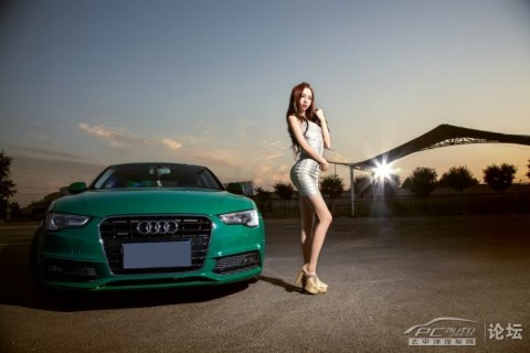 TPO - Thiếu nữ xinh đẹp khoe thân hình quyến rũ bên cạnh chiếc xế hộp có màu xanh lá độc đáo của Audi.