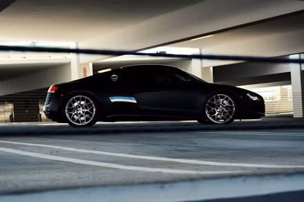 Bên cạnh việc được bọc màu đen mờ, mẫu Audi R8 đã được hạ thấp trọng tâm xuống để tăng tính thể thao nhờ vào hệ thống giảm xóc H&R Springs.
