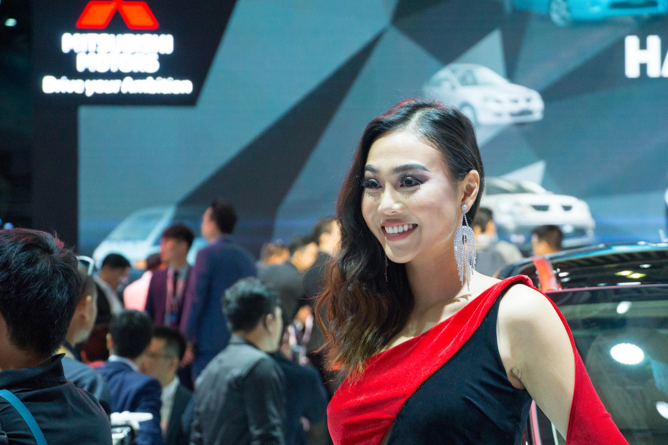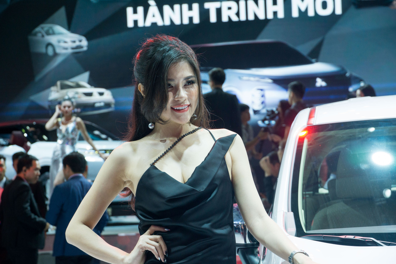 Tại VMS 2019, ngoài concept GT-PHEV gây ấn tượng mạnh, gian hàng của Mitsubishi cũng thu hút nhiều người xem nhờ các bóng hồng của mình.