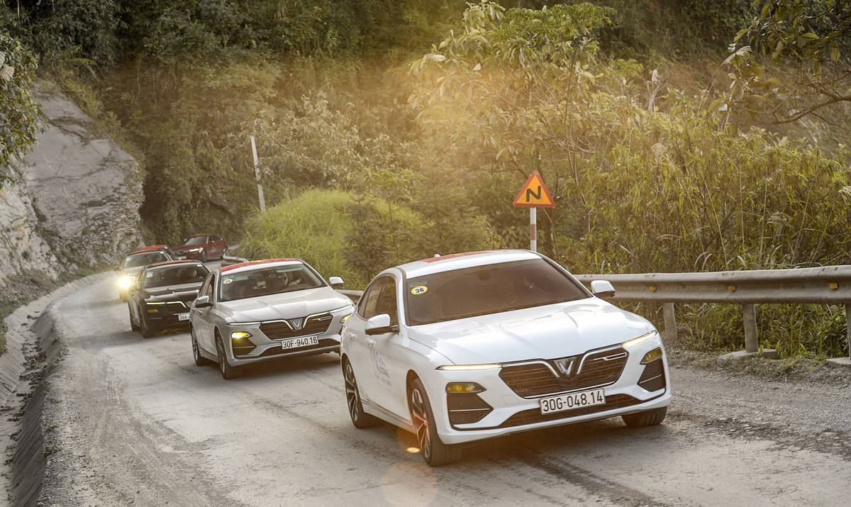 Gần như suốt dọc đường, đoàn caravan đi giữa một bên là vách đá tai mèo dựng đứng, một bên là vực thẳm. Nhà báo Trương Anh Ngọc tham gia chuyến đi không giấu được sự tự hào: “Khung cảnh Hà Giang qua ô cửa VinFast đẹp không khác gì Thuỵ Sĩ mùa thu”.
