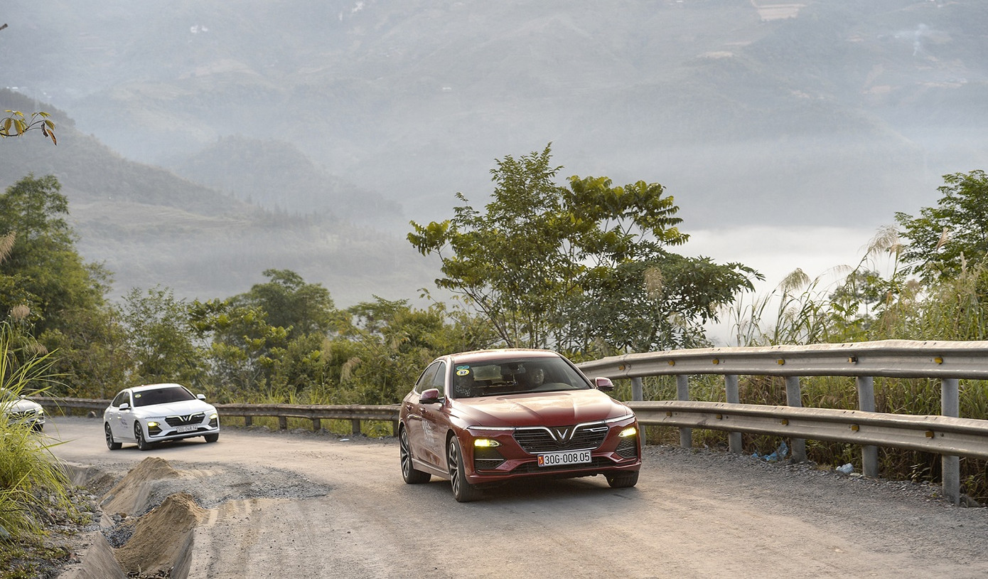 Từ đây, xe VinFast liên tiếp được thử thách bởi những con đường uốn lượn cứ thế nối nhau kéo dài bất tận. Giữa những vách đá tai mèo xám ngắt, con đường nổi bật thách thức tay lái người lữ hành. “Lái xe qua những khúc cua đầy thử thách như thế này mới thấy hết được giá trị các tính năng an toàn cao của VinFast”, chuyên gia ô tô Nguyễn Thanh Hải trực tiếp cầm lái chiếc SA2.0 trong hành trình nhận xét.
