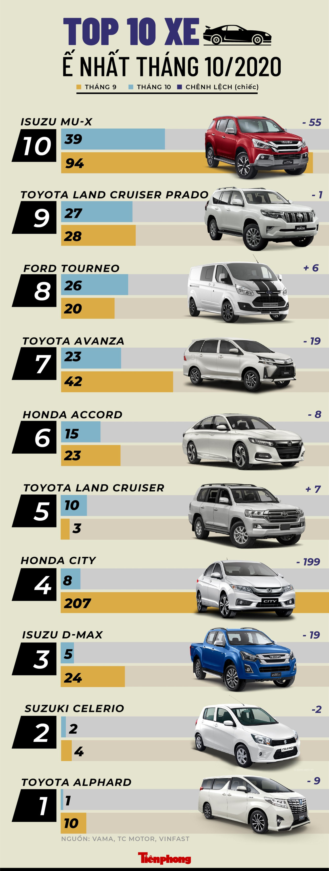 TPO - Top 10 mẫu xe bán chậm nhất tháng 10 tại Việt Nam ghi nhận bất ngờ khi Honda City đột nhiên lọt vào danh sách với doanh số chỉ 8 chiếc.