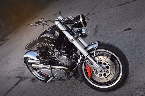 Nguyên mẫu là chiếc Yamaha Virago 750 phân khối. Tác giả sử dụng nhiều chi tiết bằng kim loại thô như đồng, nhôm và thép không gỉ để tạo cảm giác đó là chiếc xe cũ nhưng mang phong cách hiện đại.