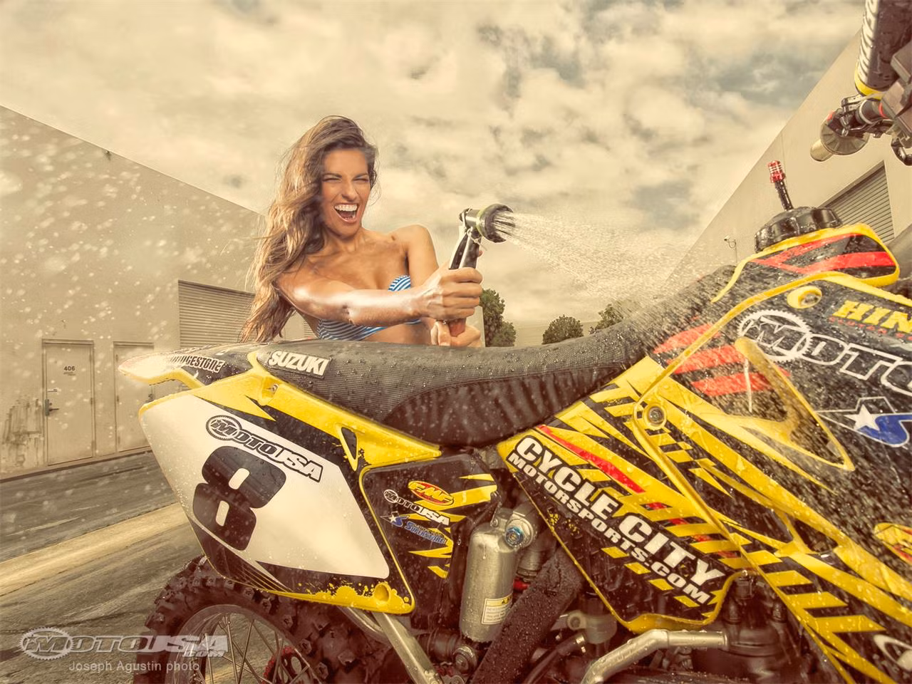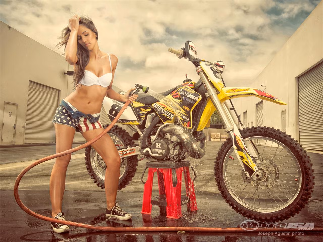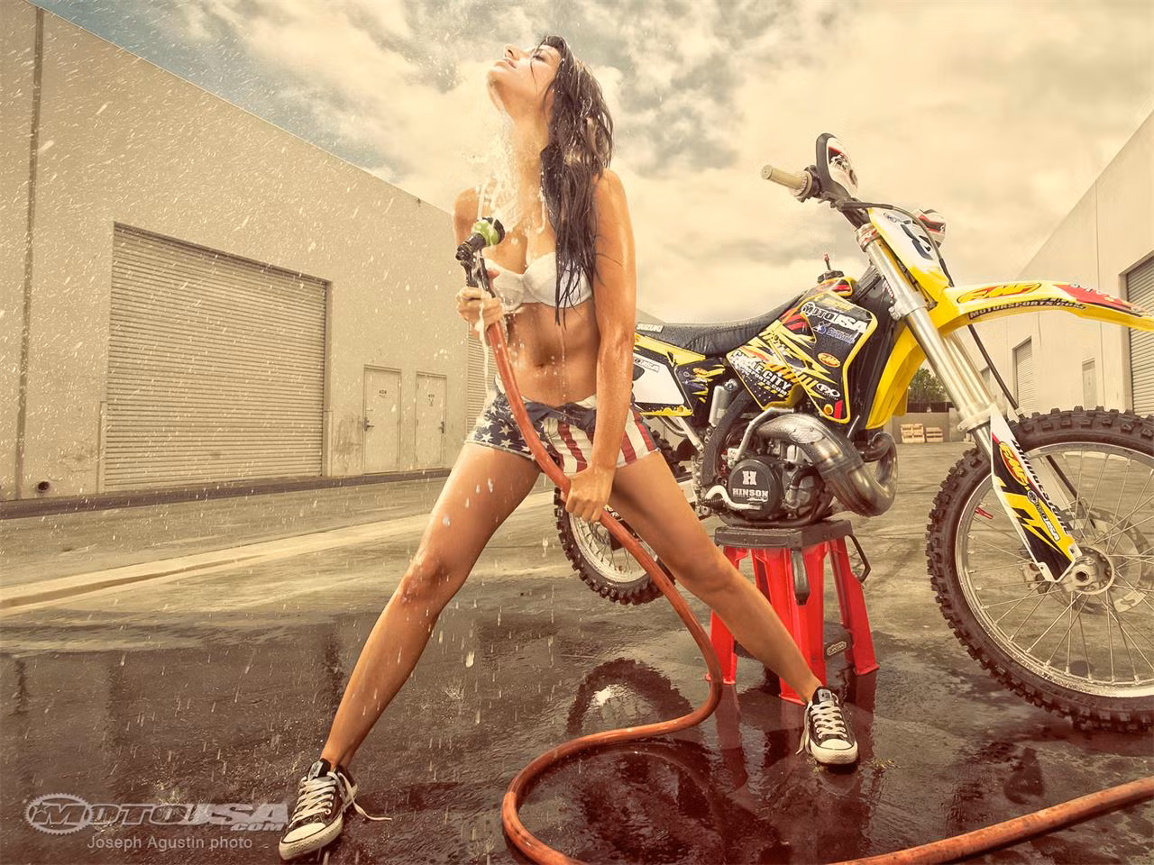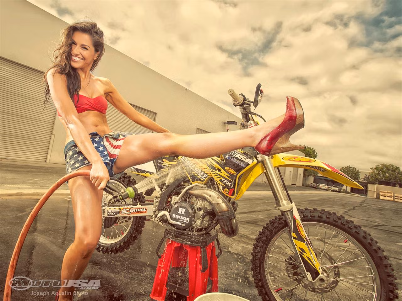 TPO - Sở hữu nụ cười thiên thần và vóc dáng hoàn hảo, cô người mẫu xinh đẹp tạo dáng bên chiếc xế nổ cào cào Suzuki RM250.